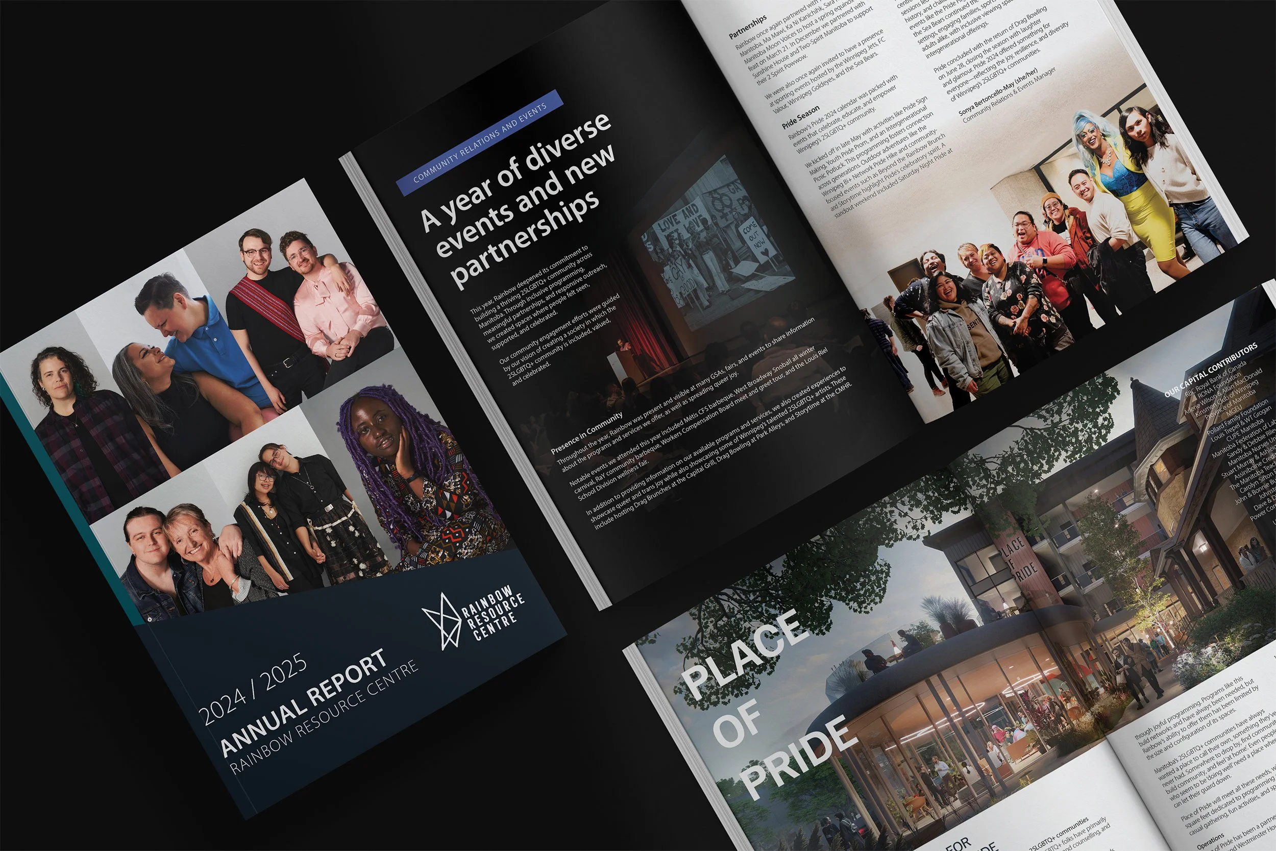 Rainbow Resource Centre required an annual report that clearly communicated the organization’s yearly impact, financial reporting, and program highlights to stakeholders and the wider community. The publication needed to present detailed information in a way that felt accessible, engaging, and aligned with the organization’s visual identity.
