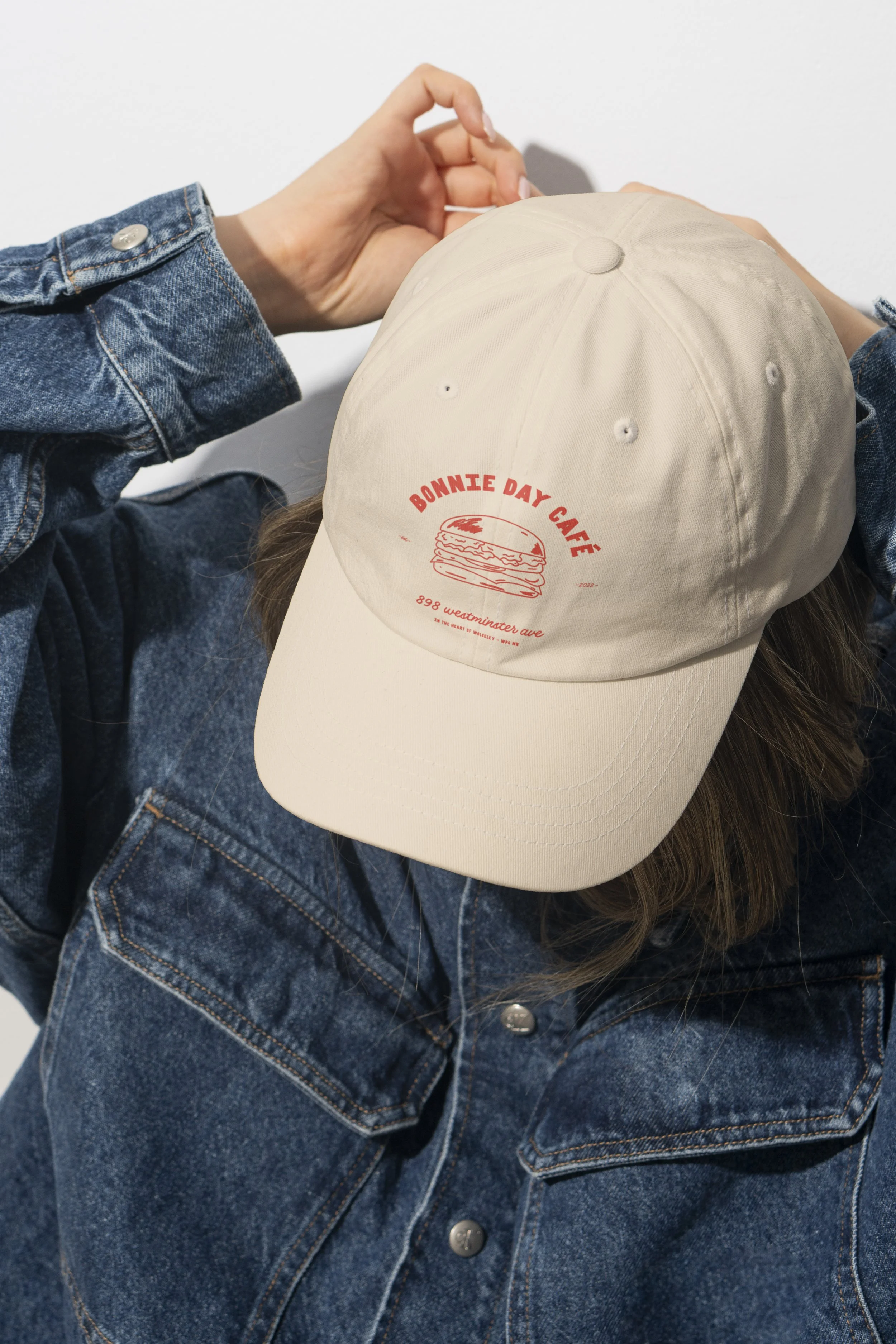 The identity was further extended into merchandise and takeaway materials, including hats, t-shirts, and a postcard featuring the Bonnie Day breakfast bun and restaurant illustrations. These pieces translate the brand into a fun, tangible expression that strengthens the restaurant’s community presence and reinforces brand recognition.