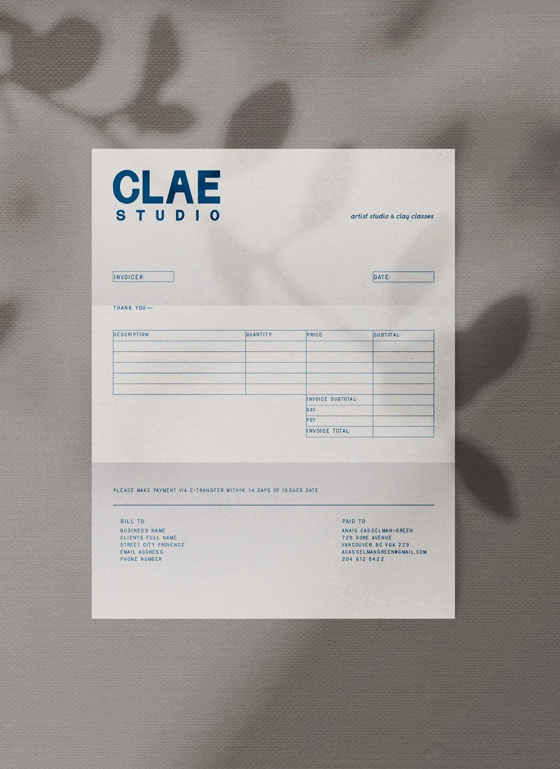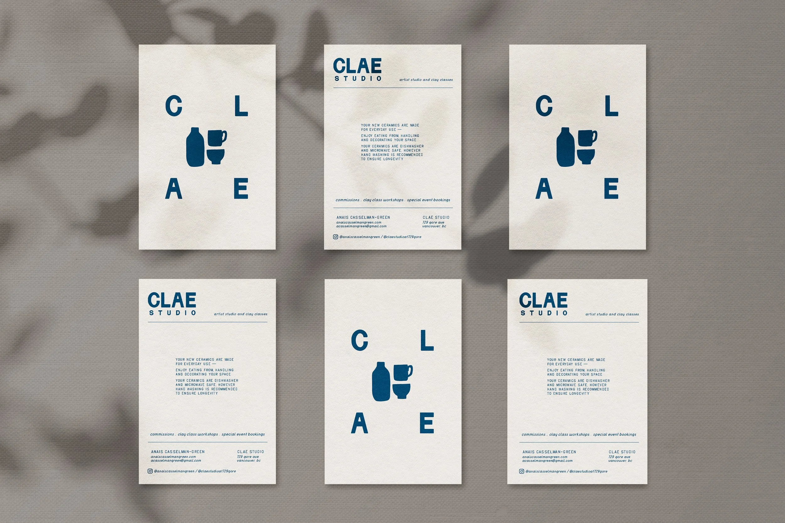 Clae Studio is a ceramic studio and class space in Vancouver, BC, founded by ceramic artist Anais Casselman-Green. The goal of the project was to develop a brand identity that reflected Anais’ modern vision, a clean, contemporary aesthetic that still acknowledges the tactile, handcrafted nature of ceramics without relying heavily on traditional organic visual cues.