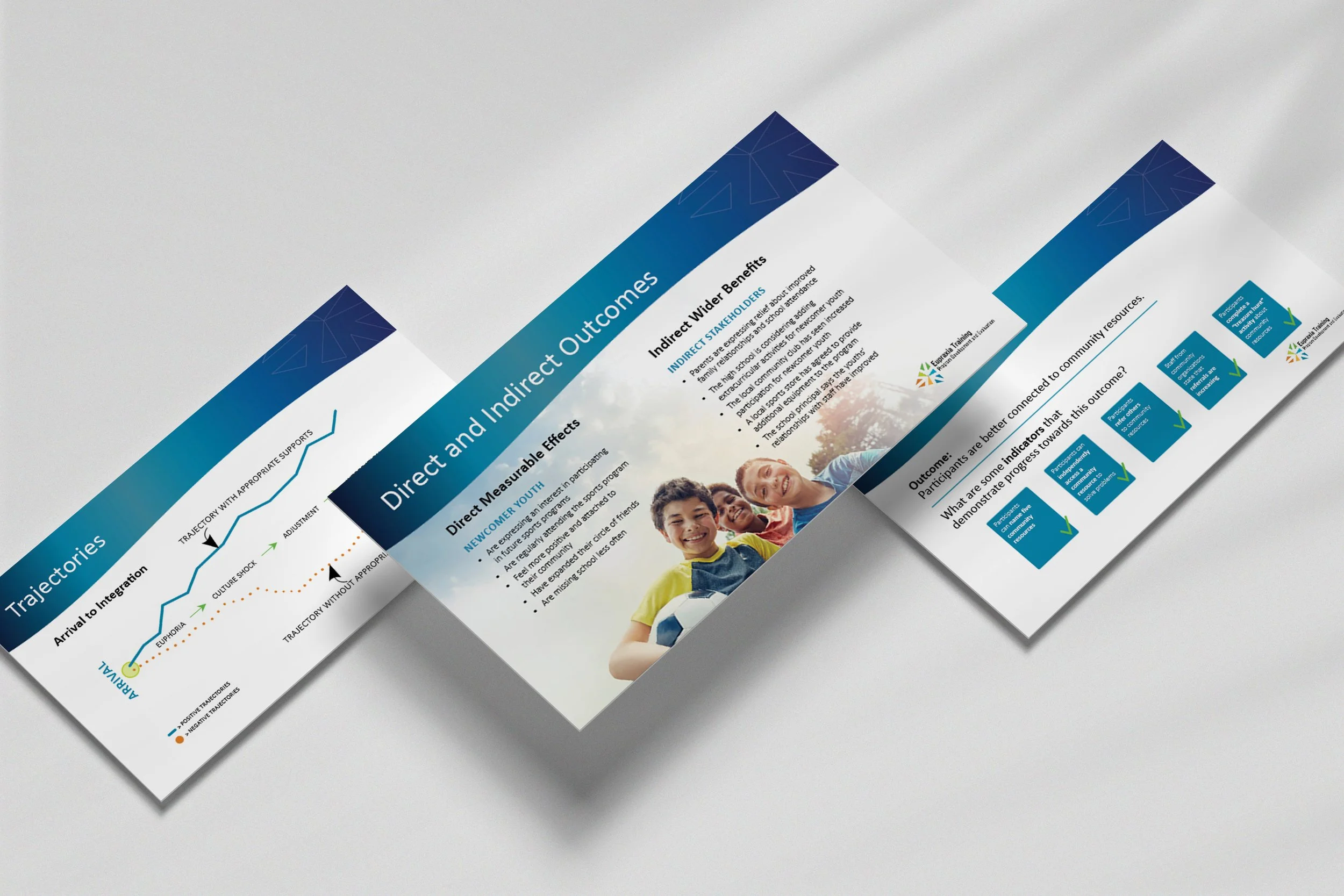 Supporting presentation slides were also developed for use in training environments. The slide system focuses on clarity and visual consistency, balancing readable typography with simple graphic elements that help guide audiences through educational content while maintaining a cohesive visual identity across digital materials.